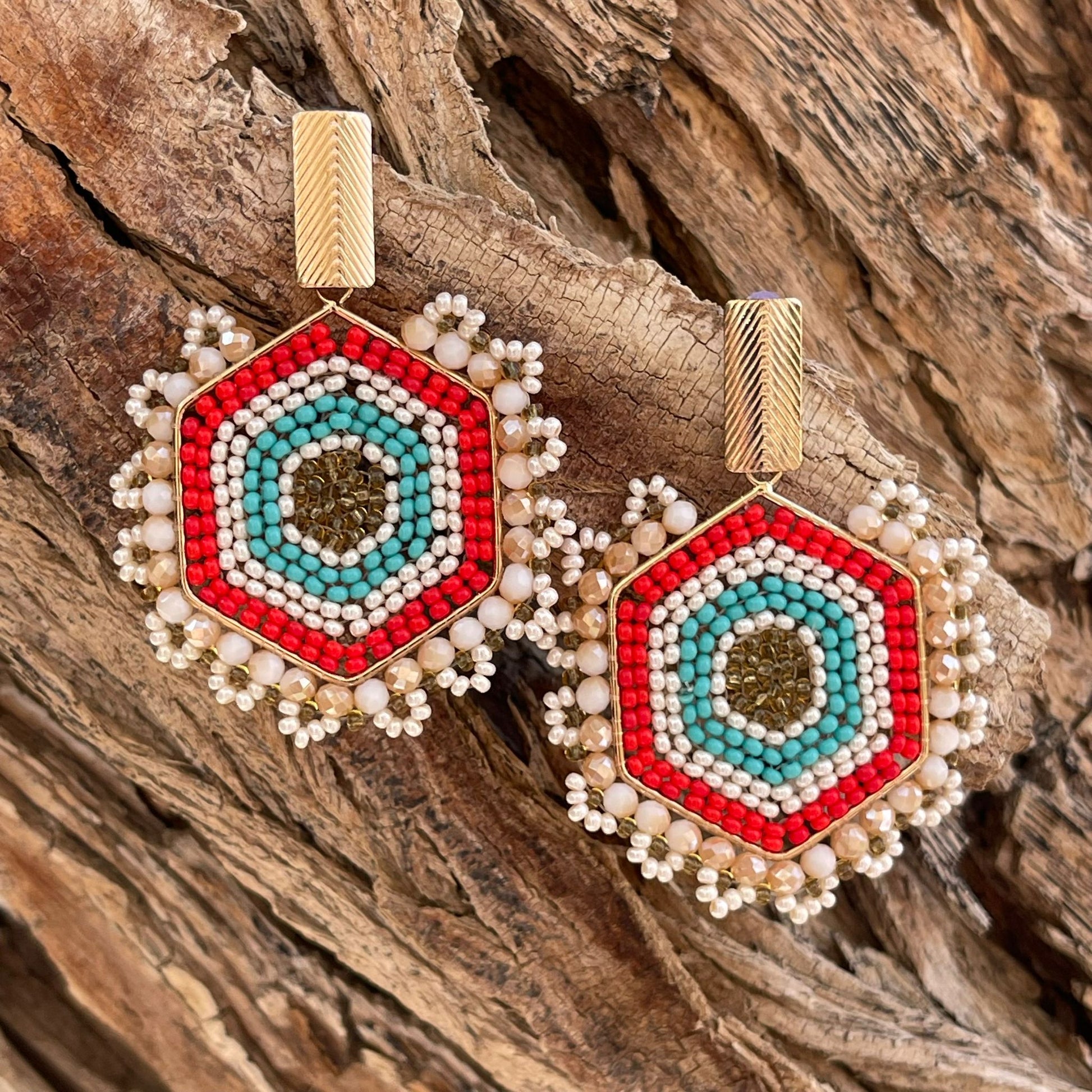Woven diamond-shaped earrings. With golden clasp. Ref. NAT02